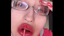 ASMR Eating BANANA PINK LIPSTICK - LIP FETISH FOOD FETISH LIPSTICK EyeGlasses 5 min